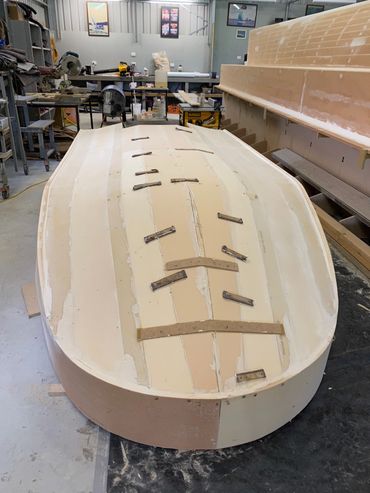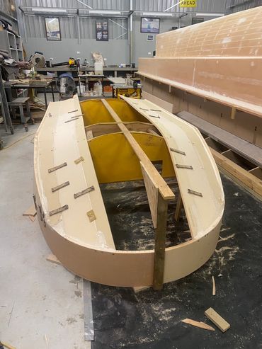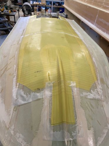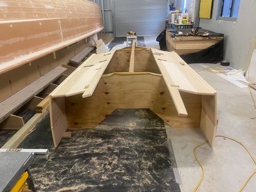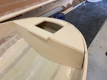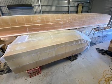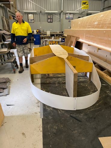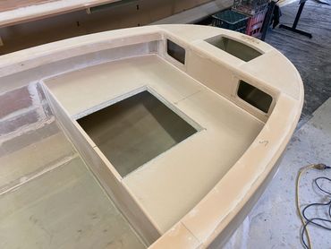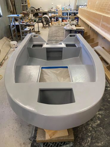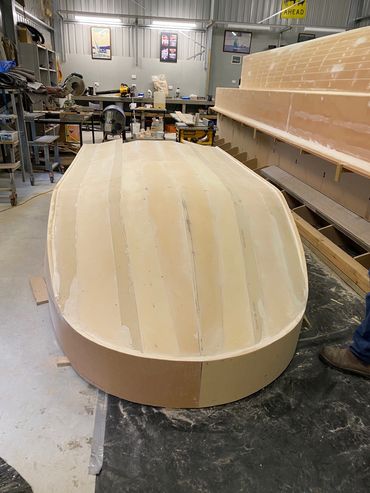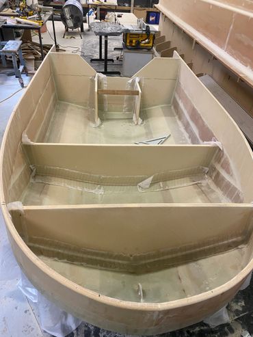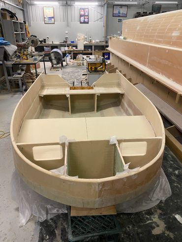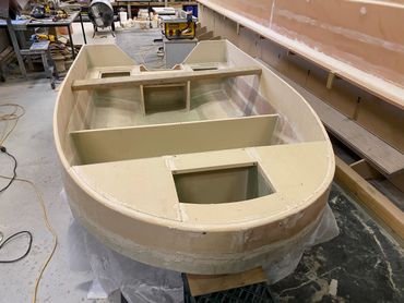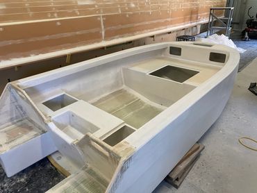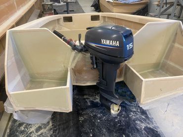 Made of Foam & Fibreglass it was a good day when it was launched and taken for the first test run. Purchased the 20hp and that helped with getting on the plain when extra people on board. The larger motor meant a re-do on the transom but that was easy enough. Also added a flat floor inside for ease of standing when fishing.